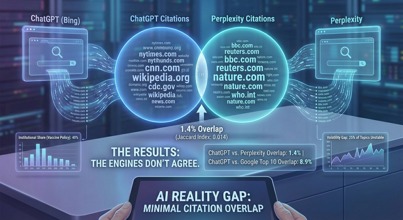 The Insight: ChatGPT and Perplexity almost never cite the same domains. They are looking at two different versions of reality.