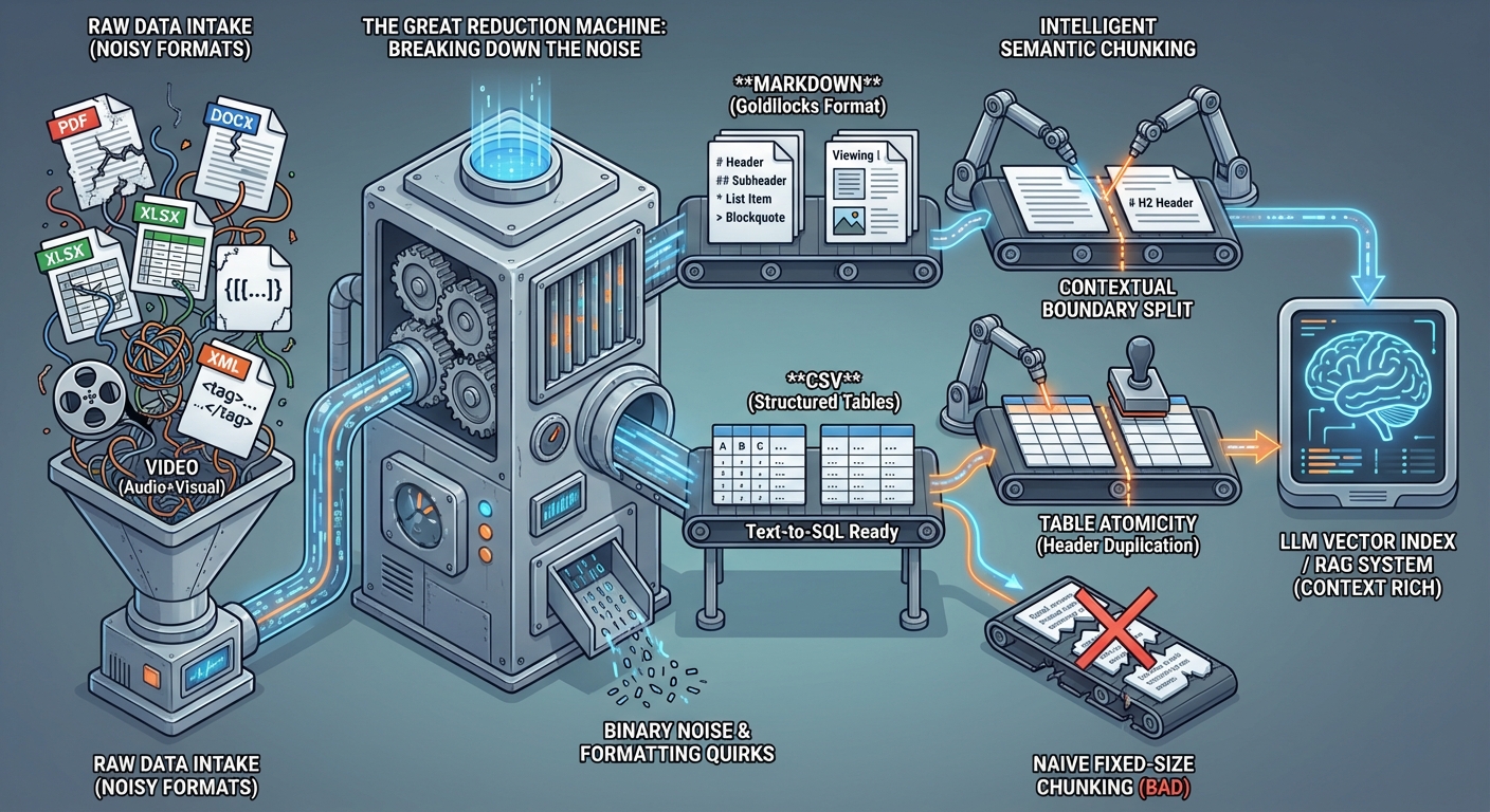 In this post, I'm sharing my personal RAG data prep philosophy. It's a no-nonsense approach to "The Great Reduction"—stripping away the noise and delivering pure, high-signal context to your models.